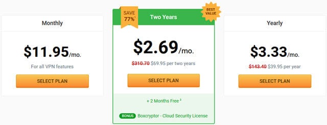 有了一个账户,你就可以保护自己的多个设备。额外费用适用于静态 IP 等额外功能。高级会员每月最多可获得 1 TB 的使用量,并可访问美国和欧洲的服务器。